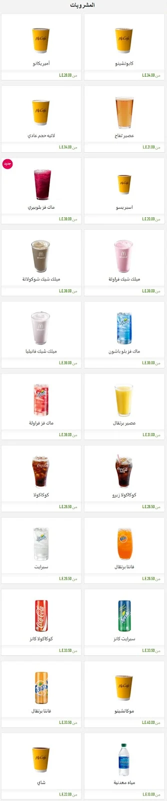 وهنا نأتي إلي منيو وقائمة أسعار ماكدونالدز مصر